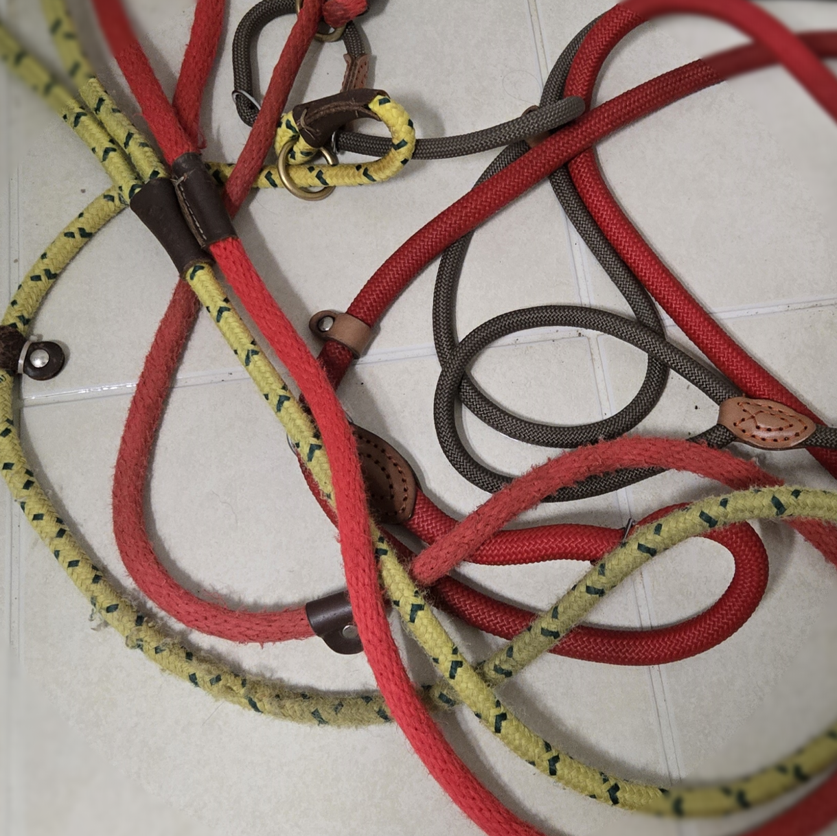 • 금속, 가죽 장식이 있는 리드줄 : 세탁기에 돌리면 손상될 수 있으니 반드시 손세탁을 권장합니다. 저는 일체형 리드줄을 쓰는데 금속과 가죽이 함께 달려 있어 반드시 손세탁을 하고 있어요.